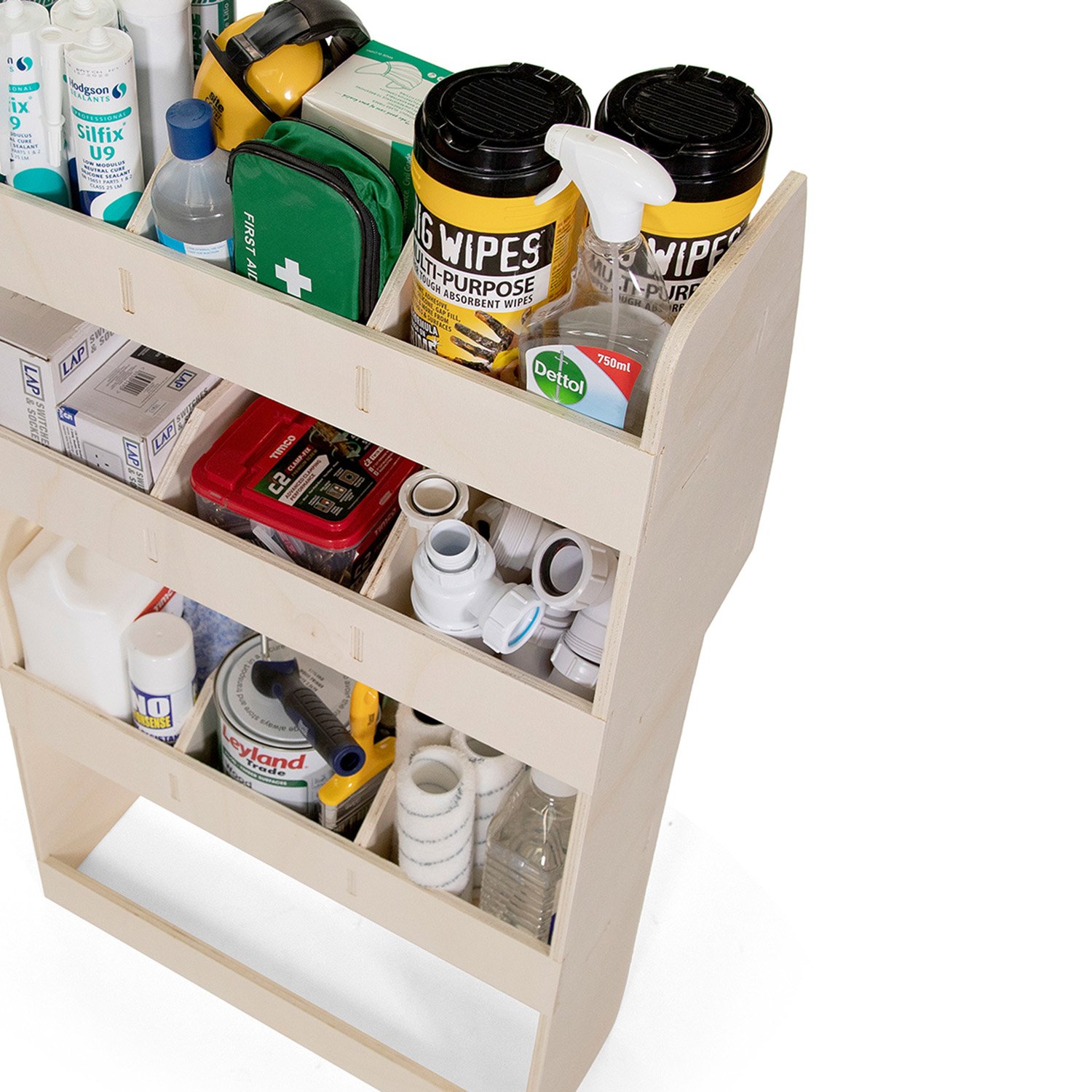 Wir bieten verschiedene Module für die maßgeschneiderte Fahrzeugeinrichtung des Ford Transit Connect an. Jede Einheit ist so konzipiert, dass sie in einem bestimmten Bereich des Laderaums positioniert werden kann. Die Regalmodule können einzeln gekauft oder kombiniert werden, um eine maßgeschneiderte Fahrzeugeinrichtung für Ihren Kastenwagen zu schaffen.